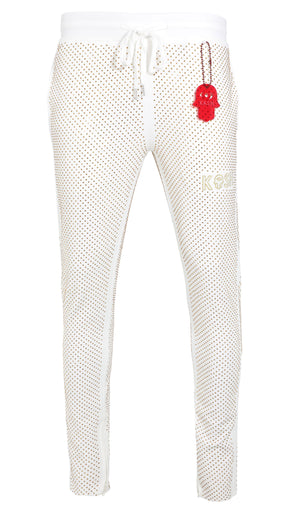 KASH CRYSTAL TRACK PANTS W| HAMSA LOGO 2.0 - WHITE|GOLD Authorized Seller