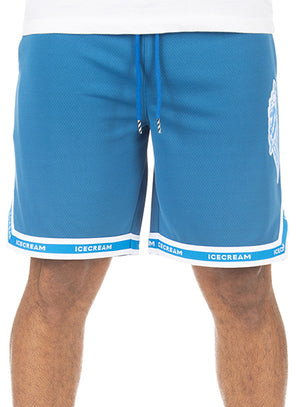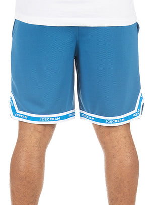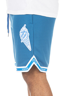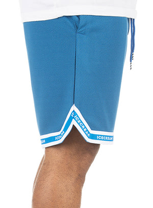 • Basketball mesh shorts with appliqué and rib taping