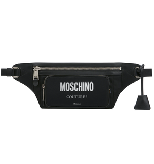 MOSCHINO LAMINATED LOGO WAIST BAG - BLACK Authorized Seller