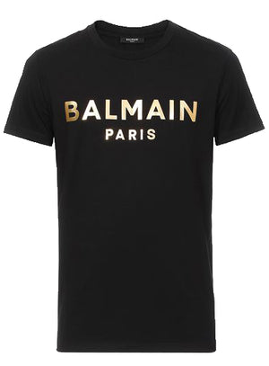 Balmain Gold Foil Print Tee - Black Authorized Seller