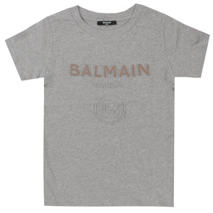 Tee With Embossed Suede Logo - Grey Authorized Seller