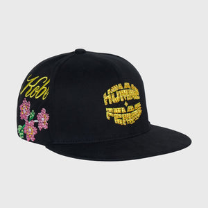 The Japan Gemstone Snapback in Black/Gold embodies the spirit of Japan—bold, disciplined, and deeply rooted in legacy. Crafted from structured acrylic-wool, this 6-panel crown features a radiant gold rhinestone HOMME FEMME logo, crystal-outlined kanji for “man” and “woman,” blooming cherry blossoms, and embroidered Tokyo, Osaka, and Kobe script. A traditional white pagoda completes the side panel—honoring the elegance of ancient Japan with modern edge.