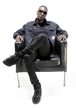 Kash Denim Jacket with Black Crystals-Black Authorized Seller