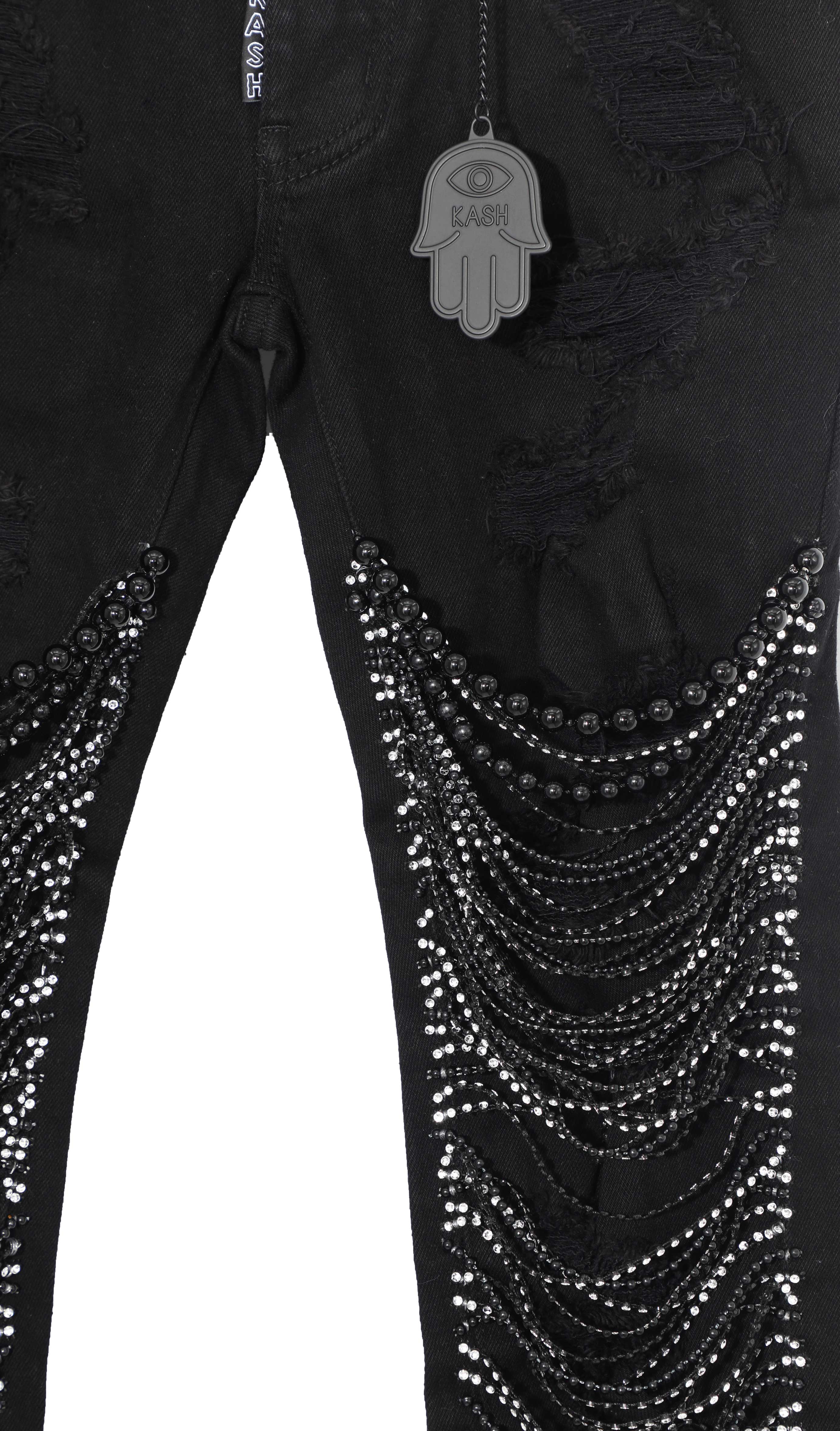 KASH PEARLS AND DIAMOND SKINNY JEANS- BLACK Authorized Seller