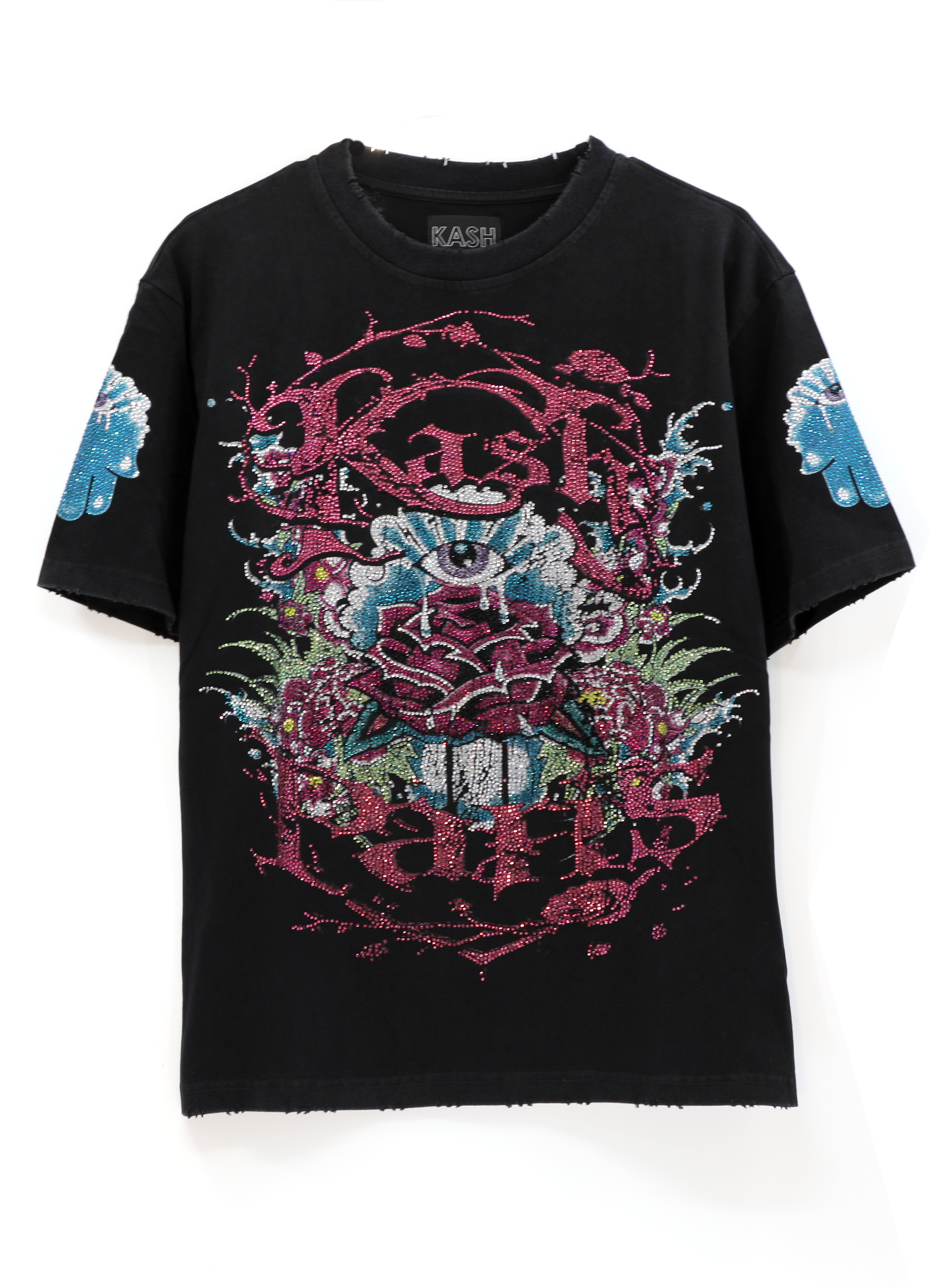 The Kash Envenomed Rose Collection SS Tee W/Rhinestones - Black Authorized Seller