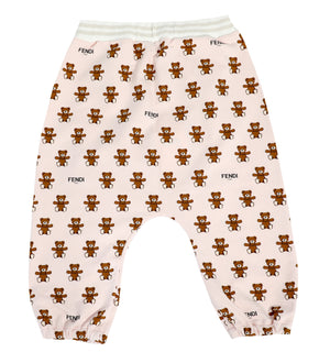 BABY PANTS WITH ELASTIC WAIST AND ALL OVER BEAR PRINT-LIGHT PINK Authorized Seller
