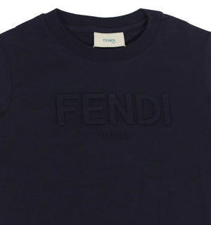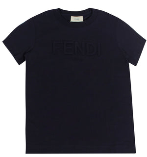 Kids Short Sleeve Tee with Fendi Text Logo - Navy Authorized Seller