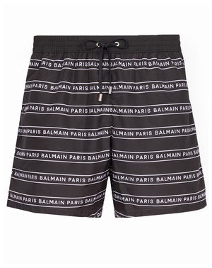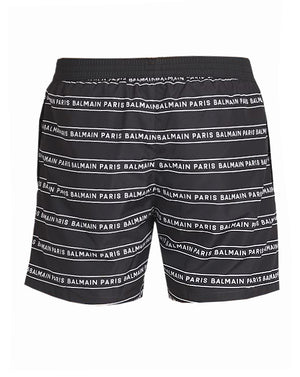 BALMAIN ALLOVER LOGO SWIM SHORT - BLACK|WHITE Authorized Seller