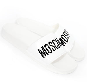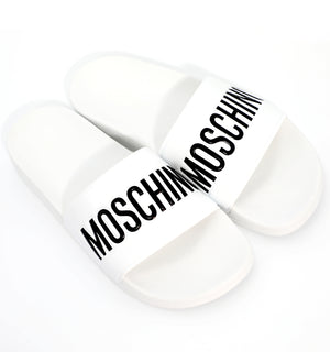 POOL SLIDES IN RUBBER WITH LOGO - WHITE/BLACK Authorized Seller