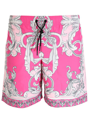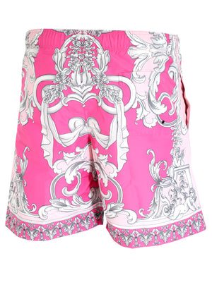 VERSACE SWIM TRUNK ROYAL PINK & GREY BAROQUE Authorized Seller
