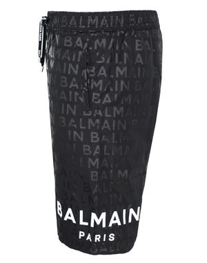 BALMAIN LOGO SWIM SHORT W| BLACK PRINT Authorized Seller