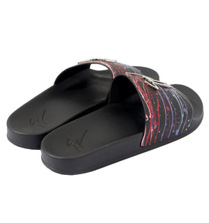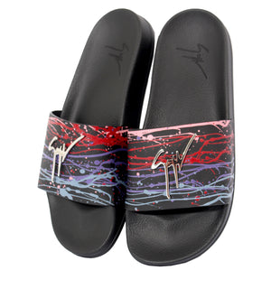 Rainbow Paint Splatter Slides - Black Authorized Seller