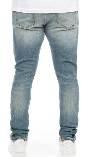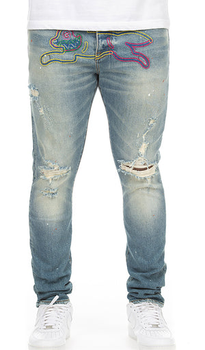 • Stretch Denim Jean with Heavy Breaking and print at crotch