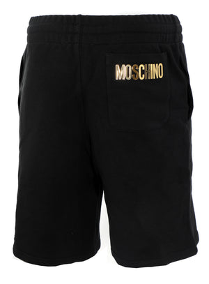 MOSCHINO GOLD PLATTED TEXT BACK POCKET SHORTS - BLACK Authorized Seller