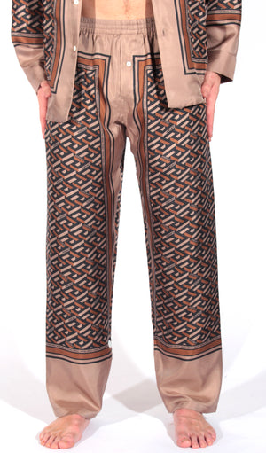 Silk Pajama Bottoms W/ Allover Print - Brown Authorized Seller
