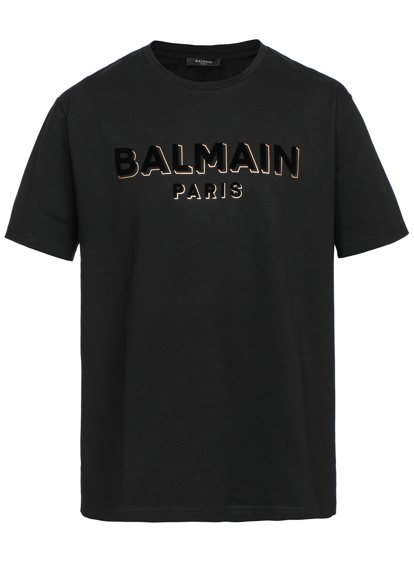 BALMAIN FLOCK & FOIL T-SHIRT - BLACK Authorized Seller