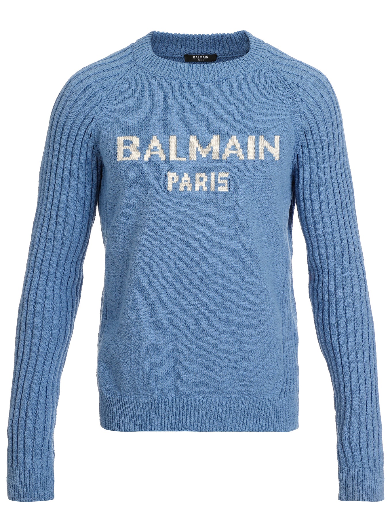 BALMAIN RUSTIC COTTON CREWNECK - BLUE Authorized Seller