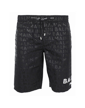 BALMAIN LOGO SWIM SHORT W| BLACK PRINT Authorized Seller