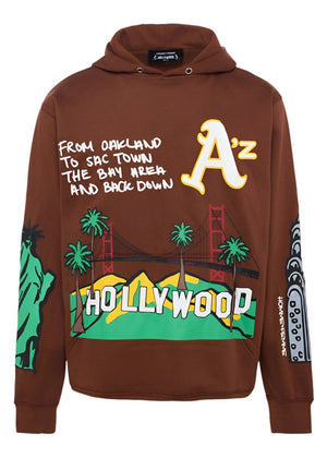 • 100% cotton hoodie in Chocolate Brown. Signature Cali to NYC graphic applied using puff print to add a textured, lux finish.