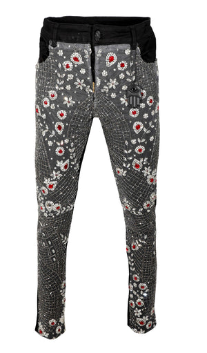 KASH COUTURE DIAMOND SKINNY DENIM -Black with Clear/Red Authorized Seller