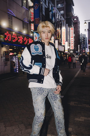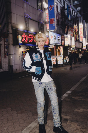 Kash Couture Collection hand sewn stone denim with over 4,000 diamonds - Blue Authorized Seller