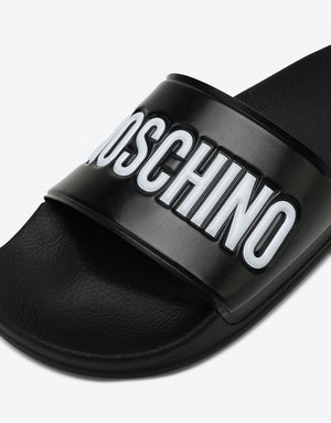 MOSCHINO SLIDES - BLACK/WHITE Authorized Seller