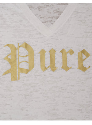 Pure V-Neck Tee Shirt with Gold Logo-White Authorized Seller