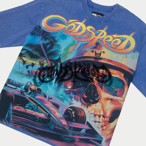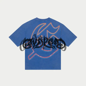 This T-Shirt is crafted from 10oz mid-weight washed fabric and features a striking art piece topped off with stones around the crown.
